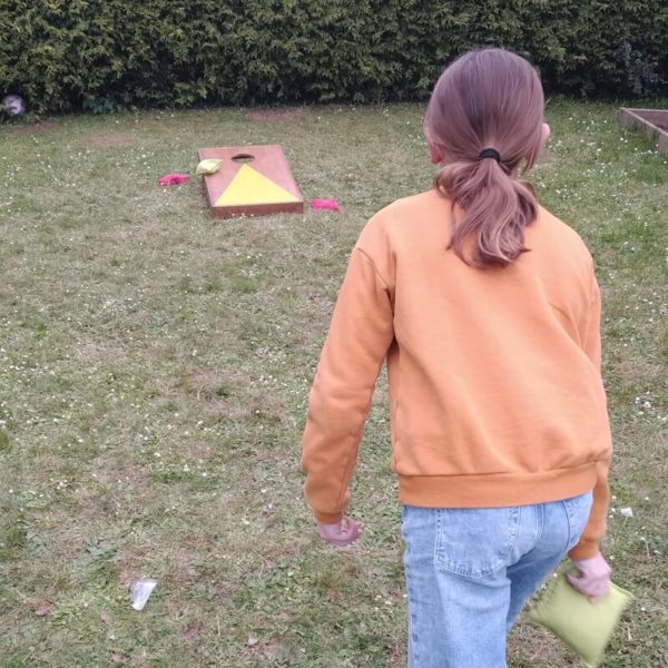Le cornhole est un jeu d’adresse qui peut être joué à l’extérieur comme à l’intérieur. Le but est de rentrer les sacs dans le trou de la planche pour marquer des points.